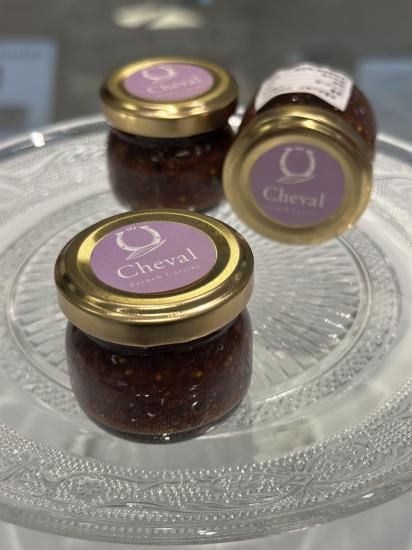 今回お作りいただいた「いちじくとカカオニブのジャム」はc7h8n4o2(チョコレートのセレクトショップ)に因んでカカオニブをつかったお料理に合うジャムをお作りいただきました!相性のいい食材同士でそのまま食べてもお楽しみいただけますが、お肉などのお料理と相性が良いとのこと!