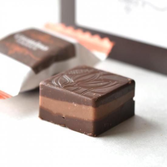 こちらはダークチョコレートのクレミーノ(へーゼルナッツペーストを練り込んだ「ジャンドゥーヤ」をベースにしてて3層のキューブ型に仕上げたチョコ)です。